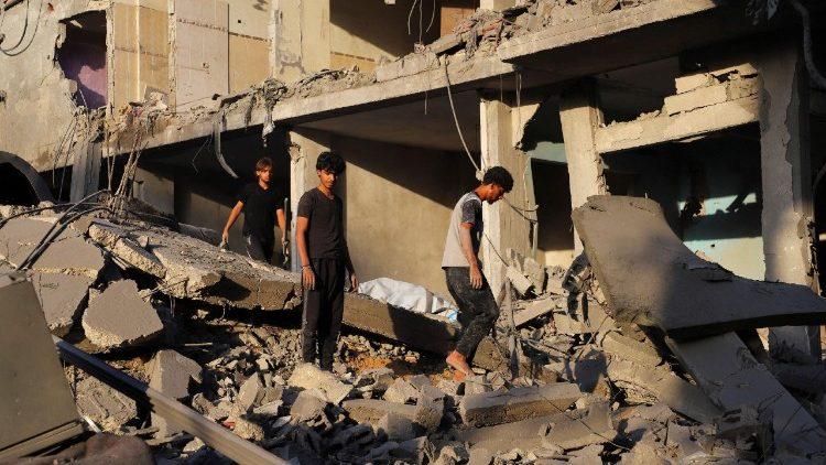 गज़ा शहर में विस्थापित परिवारों को आश्रय देनेवाली एक इमारत पर हुए इस्राएली हमले में मारे गए 20 लोगों में कथित तौर पर महिलाएँ और बच्चे भी शामिल हैं। प्रतिक्रिया देने वालों का कहना है कि कई लोग मलबे में दबे हुए हैं।