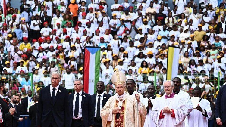 गुरुवार को रोम की वापसी यात्रा से पूर्व पोप लियो ने इक्वेटोरियल गिनी के स्टेडियम में ख्रीस्तयाग अर्पित किया जहाँ हज़ारों श्रद्धालुओं से कहा कि ख्रीस्तीय सन्देश का सार यही है कि "हर व्यक्ति बुराई की दासता से स्वतंत्र हो गया है"। उन्होंने कहा कि प्रत्येक व्यक्ति को आनन्दपूर्वक जीवन यापन का अधिकार है।