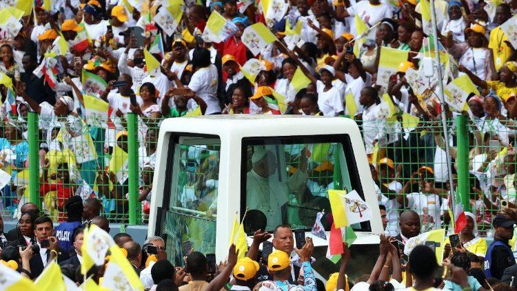 संगीत, गाने, रंग, मुस्कान और खुशी से भरे बाटा स्टेडियम में युवाओं, परिवारों, सेमिनारी छात्रों, पुरोहितों और बाटा के विश्वासियों ने बड़े गर्मजोशी से पोप का स्वागत किया। अत्यधिक प्यार के लिए उनका शुक्रिया अदा करते हुए, पोप ने इक्वेटोरियल गिनी के दौरे का आदर्शवाक्य याद किया—“ख्रीस्त, इक्वेटोरियल गिनी की रोशनी, उम्मीद के भविष्य की ओर”—और उन्हें भरोसा दिलाया कि यहां सबसे तेज रोशनी उनकी आंखों, उनके चेहरों, मुस्कानों और उनके गानों में चमकती है,” ये इस बात की गवाही है कि “ख्रीस्त हमारे जीवन की खुशी, अर्थ, प्रेरणा और खूबसूरती हैं।”