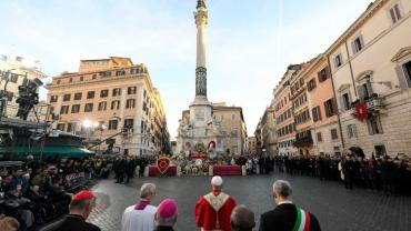 रोम में निष्कलंक गर्भागमन की माता मरियम की प्रतिमा को श्रद्धांजलि देने की दशकों पुरानी परम्परा को जारी रखते हुए पोप लियो 14वें ने 8 दिसम्बर को 12 मीटर ऊंचे स्तम्भ के नीचे प्रार्थना की एवं फूल माला अर्पित की, जिसके ऊपर माता मरियम की प्रतिमा स्थापित है।
